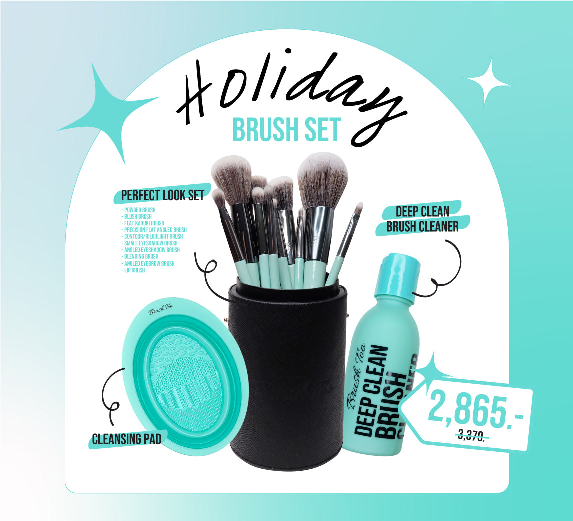 ชุดแปรงแต่งหน้า 10 ชิ้น BRUSHTOO PERFECT LOOK SET IN TUBE + แผ่นล้างแปรง สีเขียวมิ้นท์ + น้ำยาล้างแปรง
